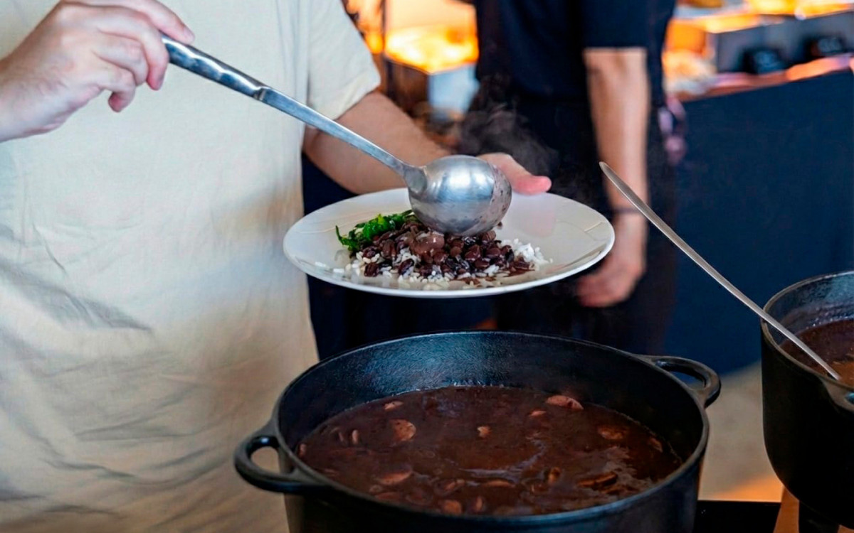 Já quem prefere curtir o feriado à beira-mar pode optar pelo Quiosque Nacional, localizado em frente ao hotel, na orla. Também das 12h às 16h, o espaço oferece um menu executivo especial, com opções de feijoada individual ou para duas pessoas — neste caso, com um chopp incluído. O ambiente é mais informal, com promoção de caipirinha em dose dupla e música ao vivo, transformando o calçadão de São Conrado em um ponto de encontro para celebrar o santo guerreiro.